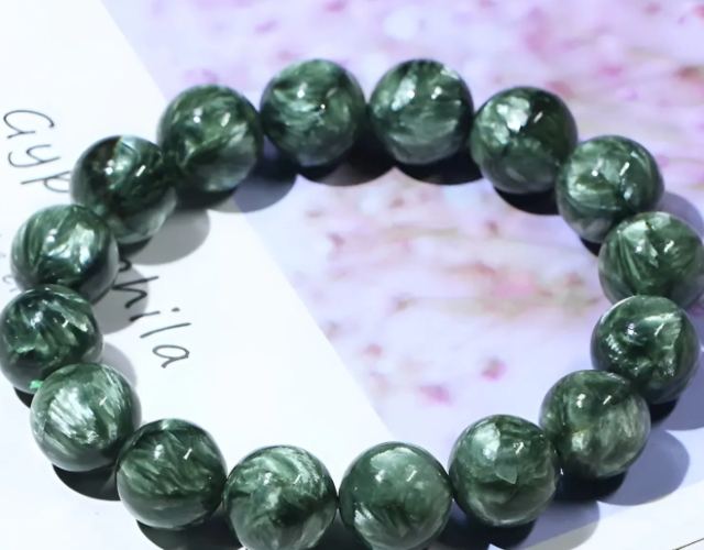 綠龍晶(Seraphinite),這名字聽起來就很有氣場對吧?它的礦物學名其實叫斜綠泥石(Clinochlore),"Seraphinite"這個商業名稱,據說靈感來自它羽毛狀或鱗片狀的光澤,讓人聯想到天使的羽毛(Seraphim是聖經裡的高階天使)。主成分是複雜的矽酸鹽,那些讓它身價翻倍的、迷人的翠綠和銀白紋路,主要歸功於裡面所含的鉻元素和特殊的纖維狀結構。
