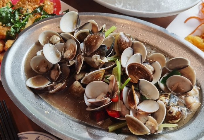3 炒蛤蜊 海鮮王熱炒 120-180元 蛤蜊大顆,湯汁鮮美